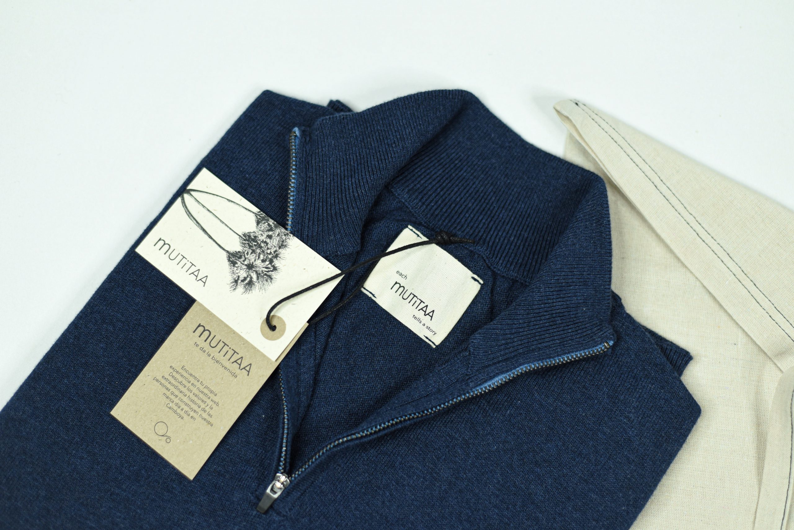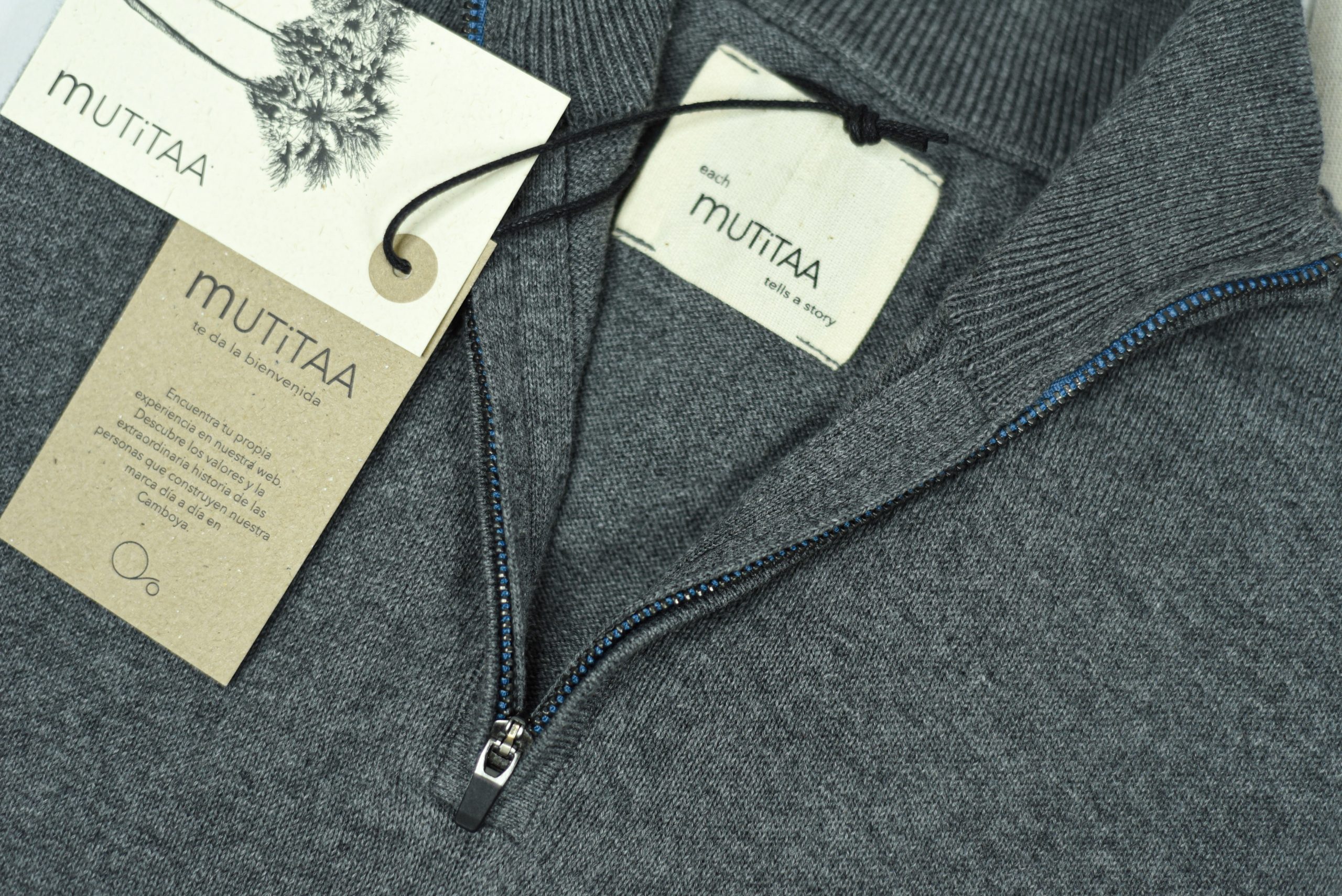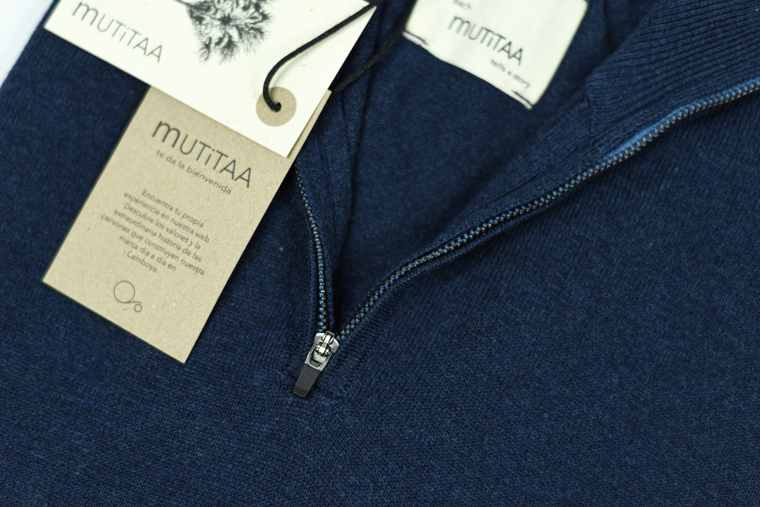 Jersey con cremallera y cuello chimenea, manga larga con acabado canalé en bajo y puños. Tacto suave y grosor fino válido para cualquier época del año. Composición: 95% algodón y 5% cachemire.