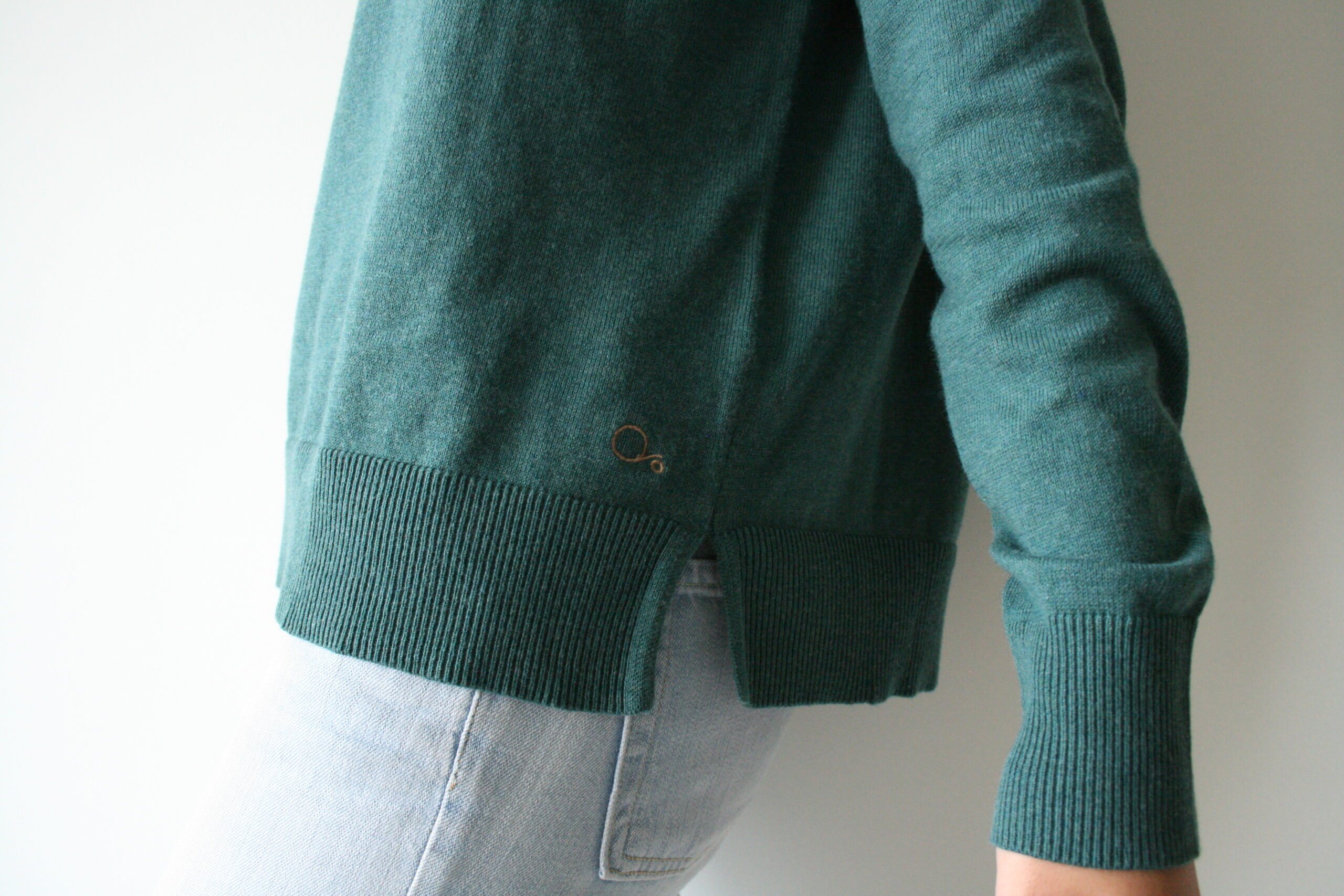 Jersey de mujer cuello redondo con aberturas laterales, manga larga con acabado canalé en bajo y puños. Detalle de logo bordado en el bajo. Tacto suave y grosor fino válido para cualquier época del año.