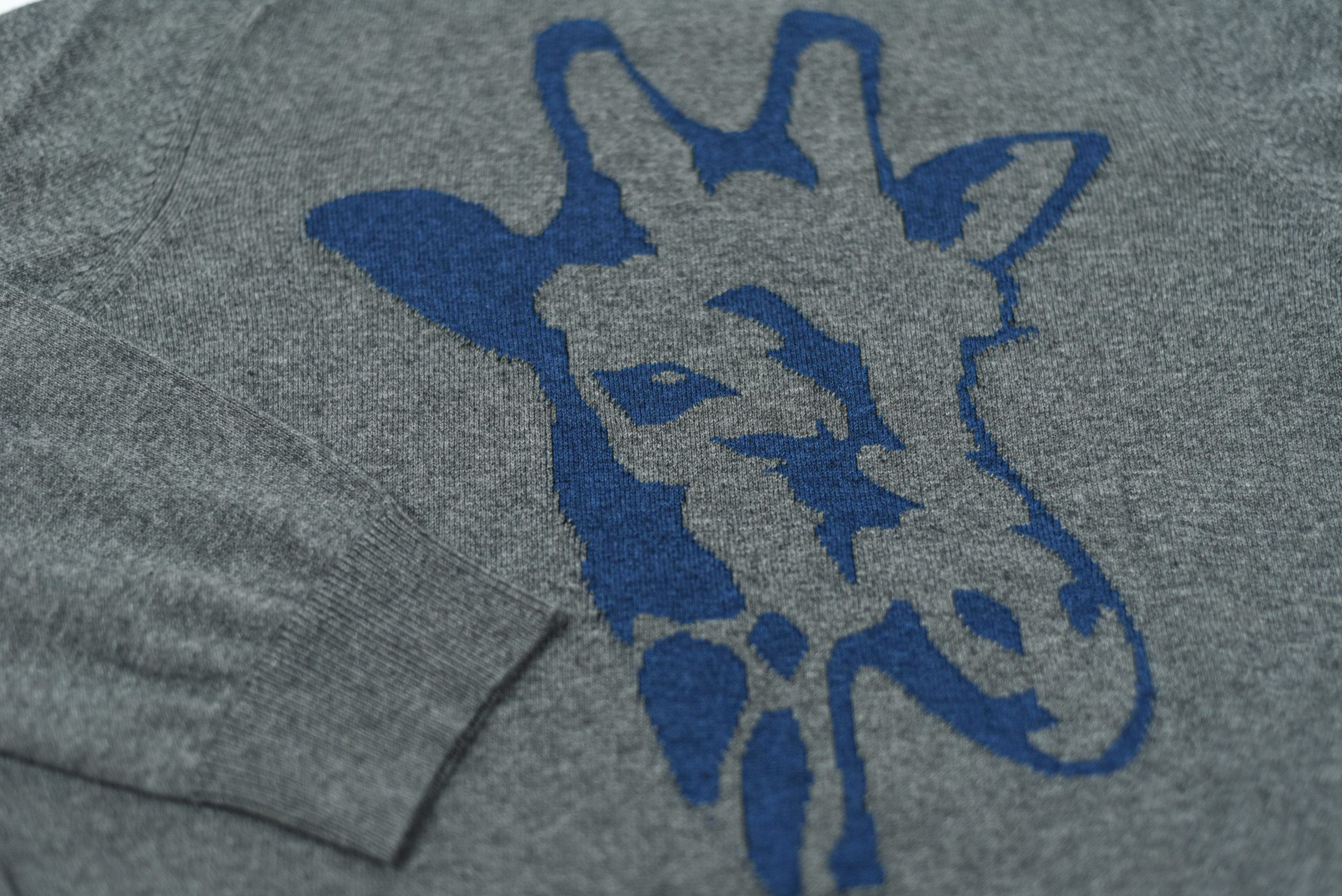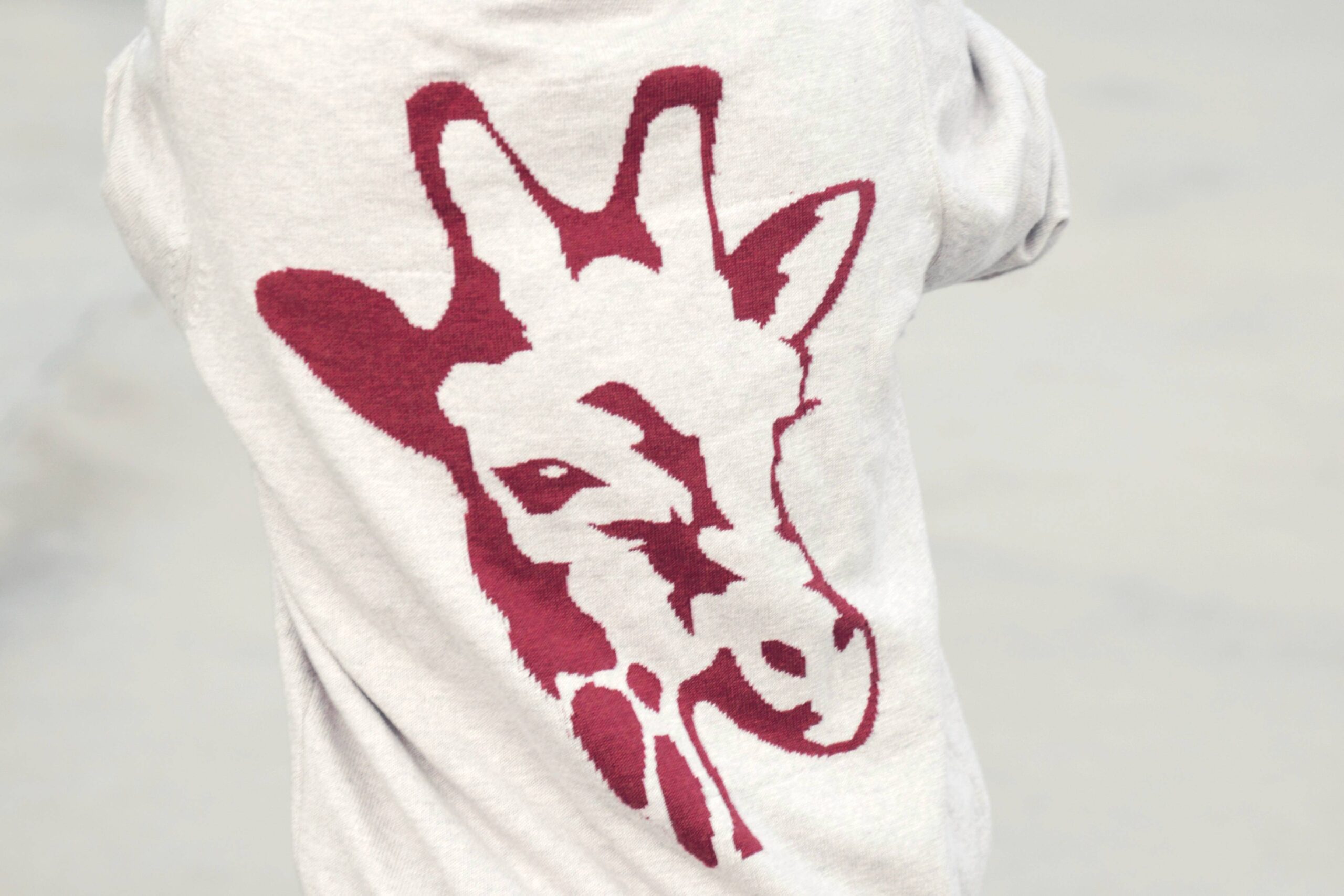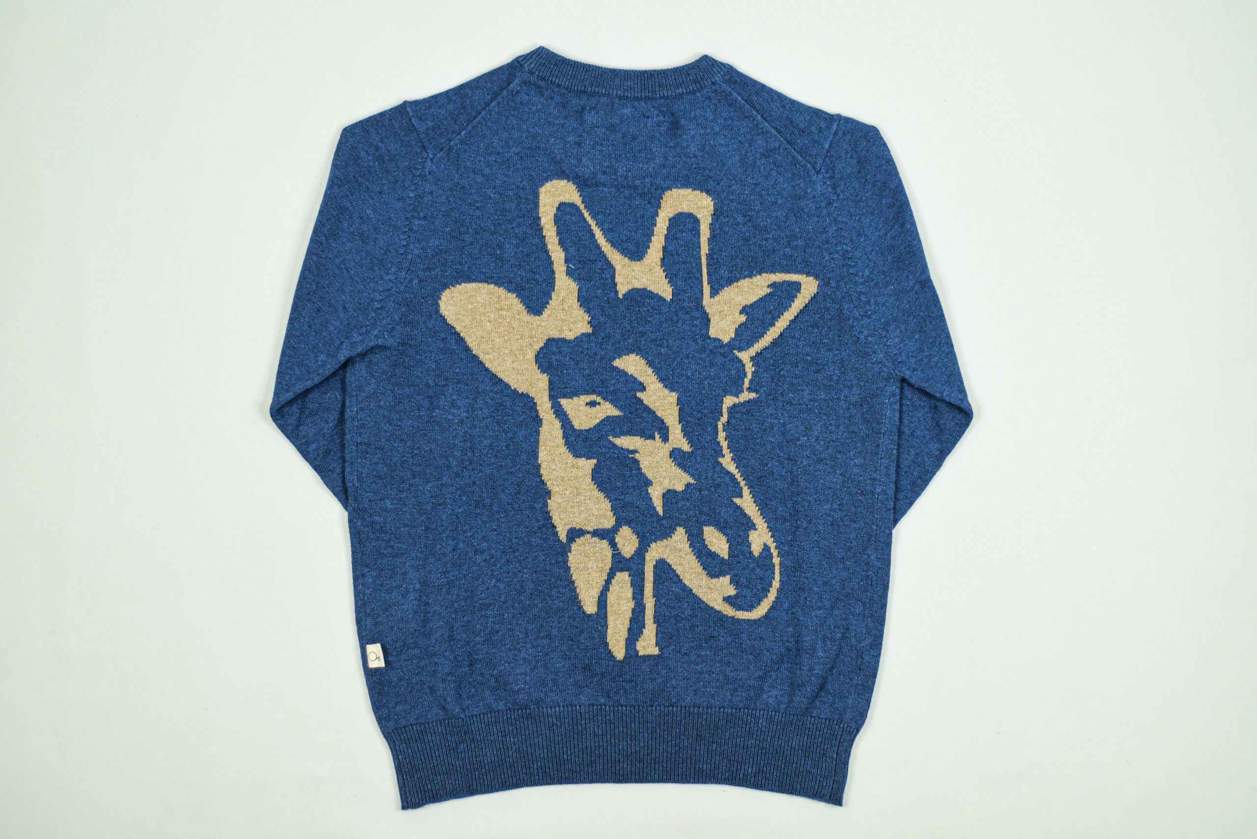 Jersey con intarsia de jirafa en la espalda, cuello redondo y manga larga con acabado canalé en bajo y puños. Tacto suave y grosor fino válido para cualquier época del año. Saber más sobre tallas