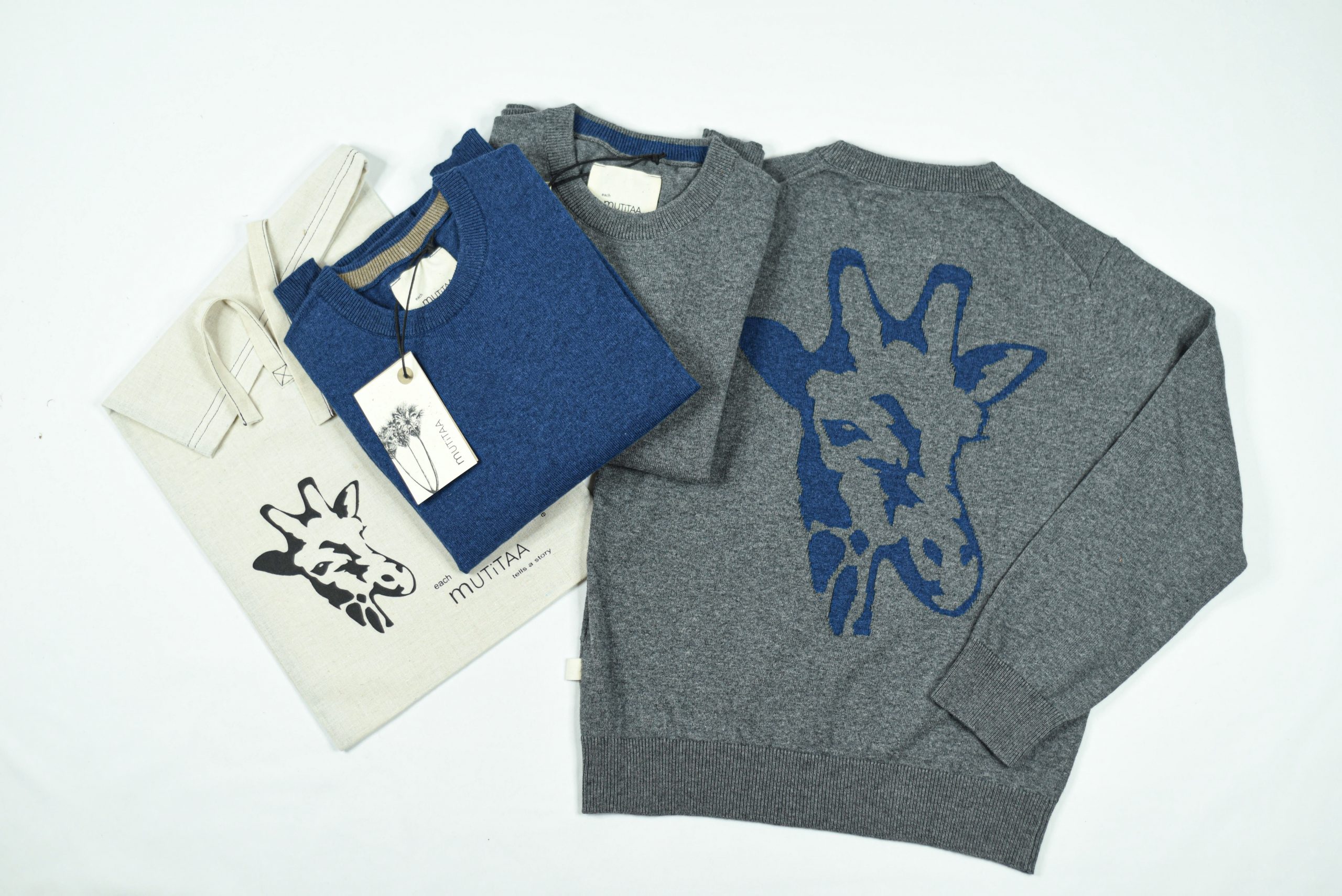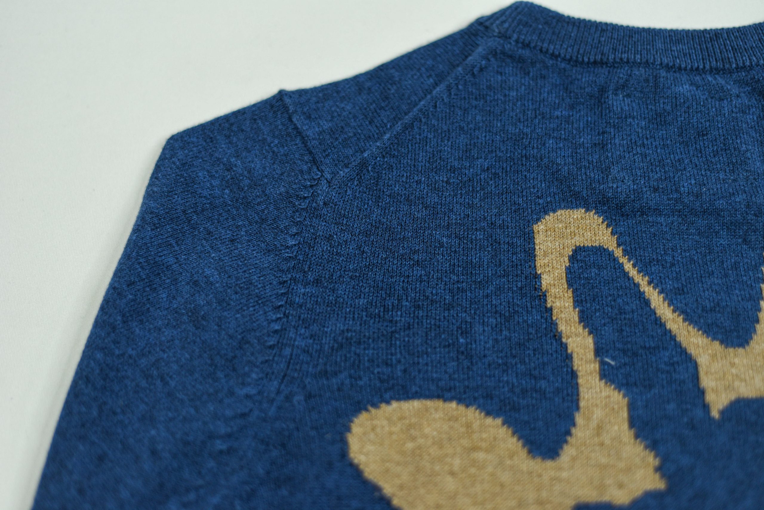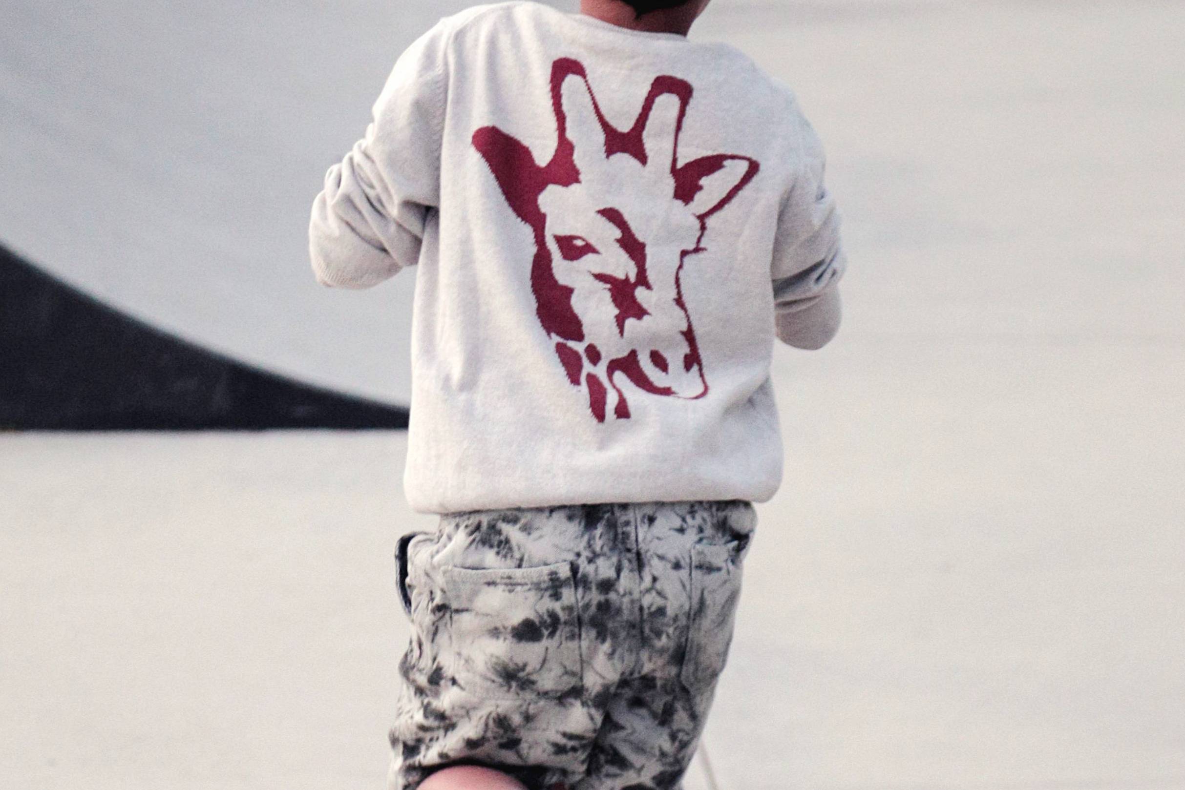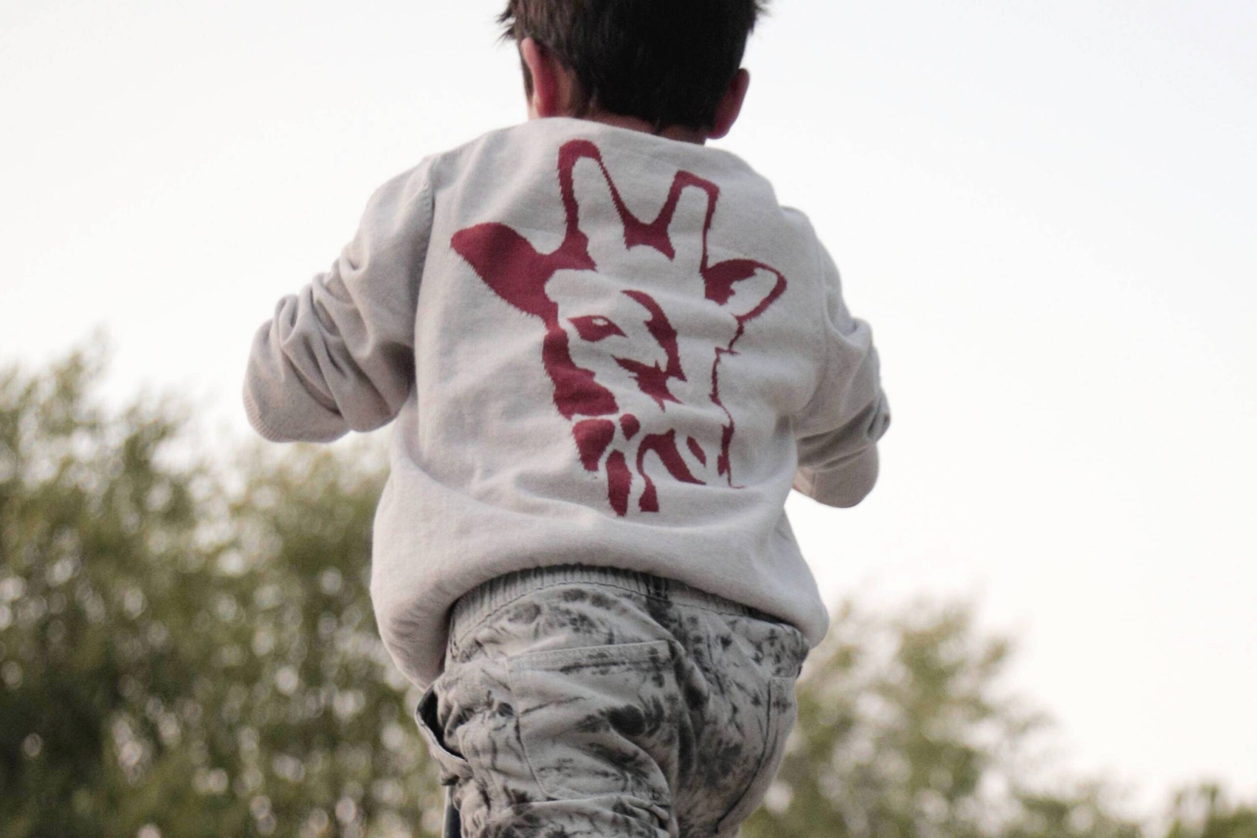 Jersey con intarsia de jirafa en la espalda, cuello redondo y manga larga con acabado canalé en bajo y puños. Tacto suave y grosor fino válido para cualquier época del año. Saber más sobre tallas
